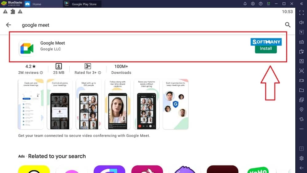 5. Write the name of the Google Meet App in the search bar of the Play Store.